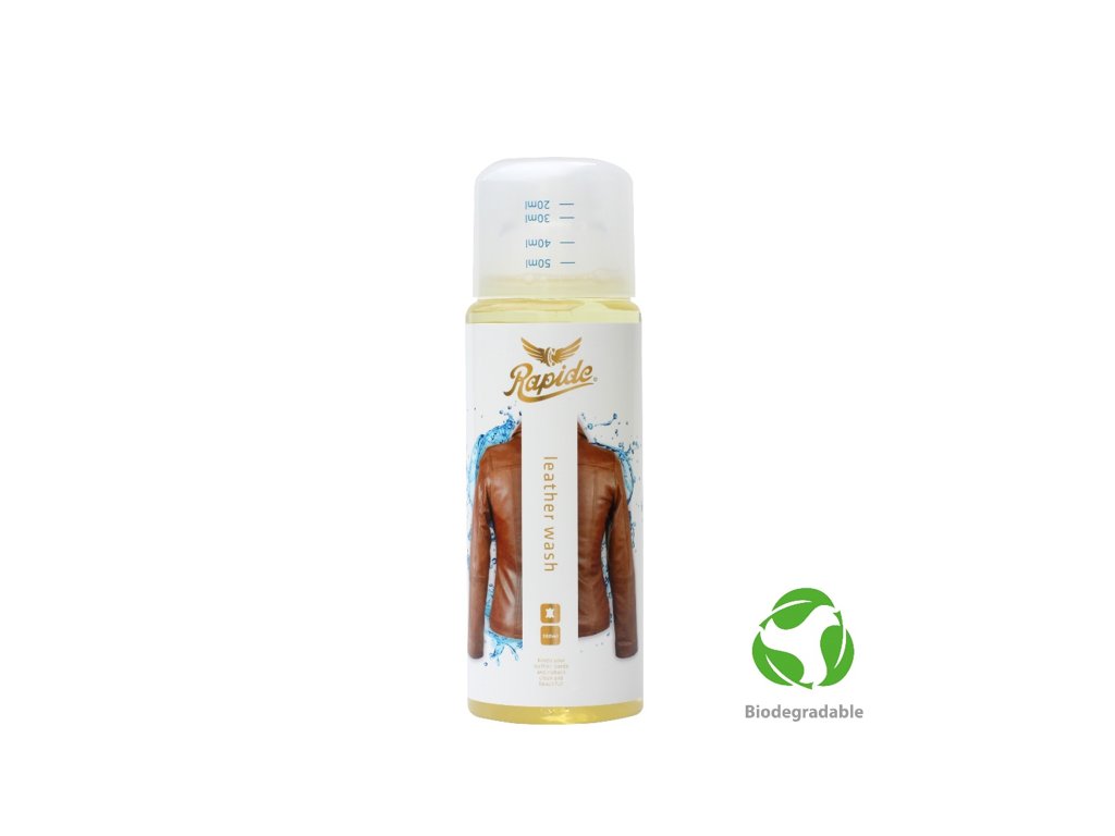 Popis výrobku: Rapide Leather Wash je vysoce koncentrovaný účinný prací prostředek na kůži, semiš, jelenice a jejich kombinace. Vhodný pro praní v pračce i ruční praní. Nejen čistí, ale promašťuje, vyživuje materiál a obnovuje barvu. Vždy nejprve čtěte instrukce pro praní na štítku oděvu.